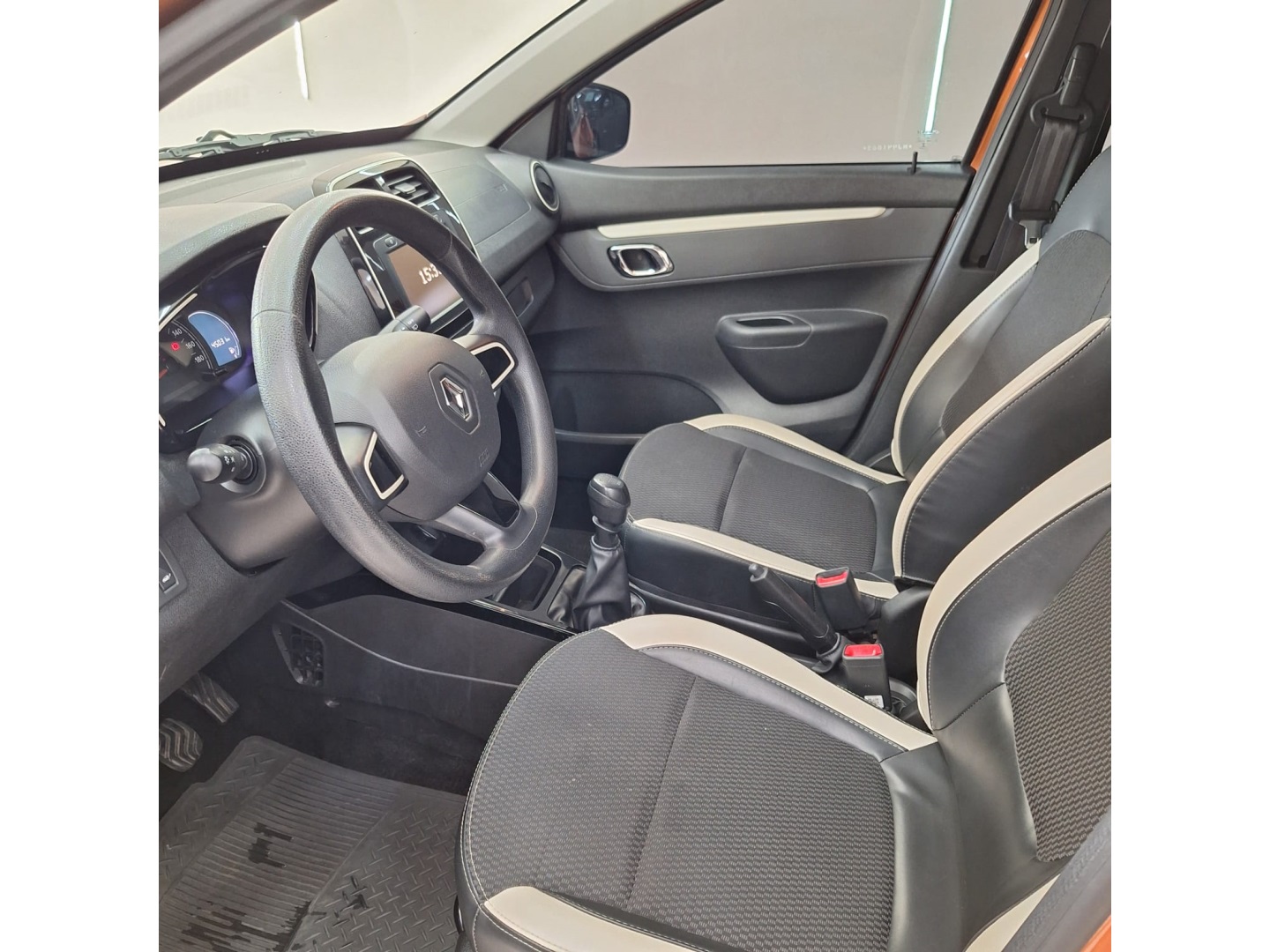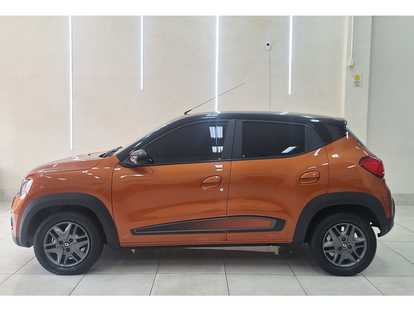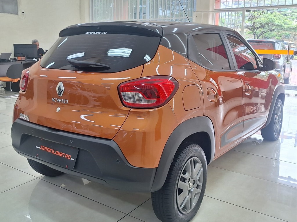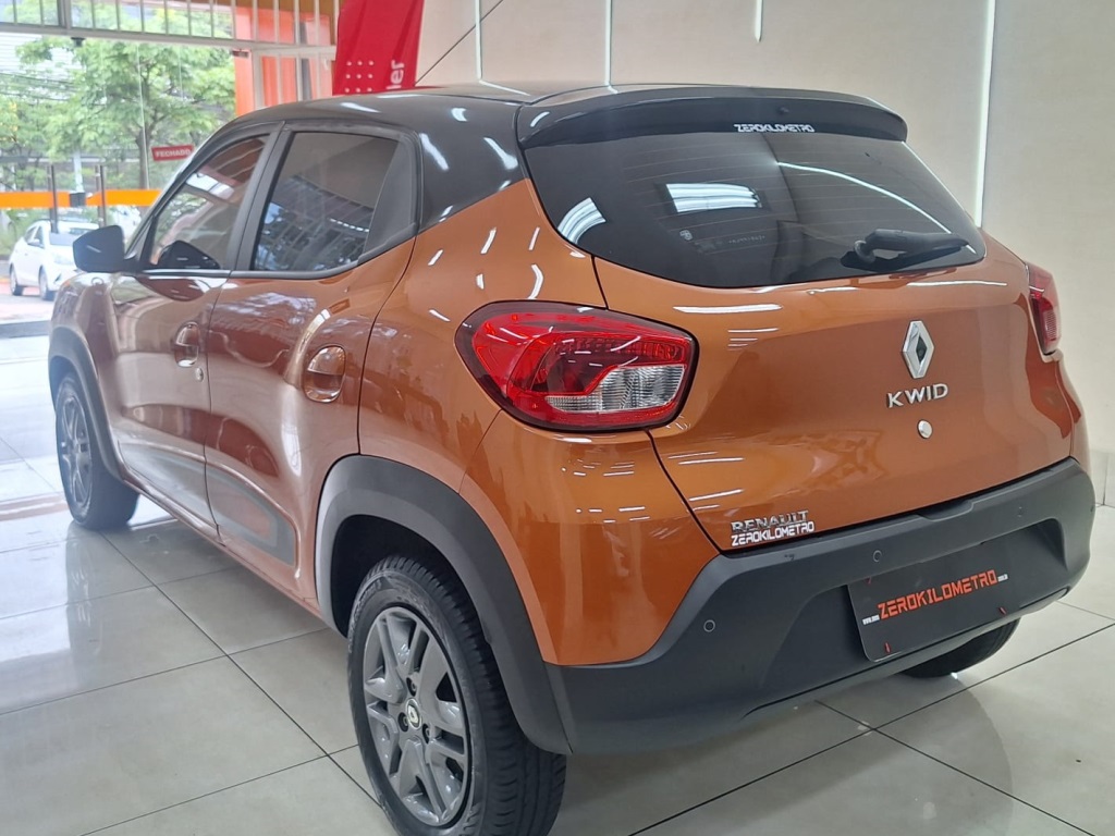 Kwid Intense 2021, na cor laranja, que destaca o visual moderno e jovem do carro.
